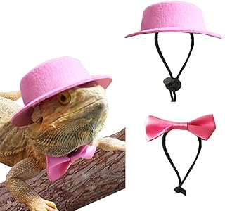 Sawyd Bearded Dragon Hut und Fliege, süßes Valentinstags-Kleidungs-Set, verstellbare kleine Tiere, Fliege für Reptilien, Eidechsen (rosa