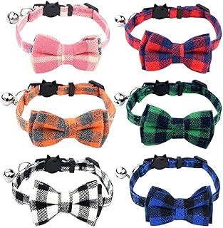 Yookat 6 Stück Katzenhalsbänder mit Fliege Katzenhalsband Breakaway mit niedlicher Fliege und Glocke Katze Fliege Glocke verstellbar für Katzen und kleine Welpen