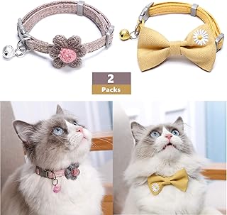 Katzenhalsband mit Glöckchen und Fliege, 2 Stück, verstellbare Fliege, Blumen, Sicherheitsschnalle, Halsbänder für Kätzchen, kleine Hunde, Welpen, Haustiere, Gelb und Pink
