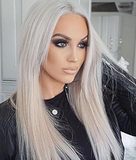 Kunsthaar-Perücke, hitzebeständig, silberfarben, Aschblond, Grau, mit Spitze vorne, weich, lang, silberfarben, Platinblond