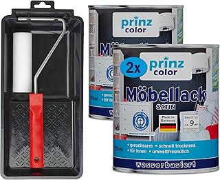 prinzcolor Premium Möbellack Weisslack Türenlack Holzlack Lackierset Weiß - Seidenglänzend 1,5l - Lackierset