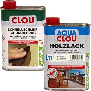 Clou Lackierset, Grundierung G1 und Klarlack L11 seidenglänzend, je 250 ml für unbehandeltes und gebeiztes Holz im Innenbereich