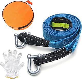ENJOHOS Abschleppseil, 5M Abschleppseil pkw, Bergegurt mit 2 schäkel, 7.5cm x 5M Abschleppseil Auto, Abschleppschlaufe für LKW, Jeep