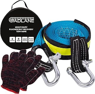 GADLANE Hochfestes Abschleppseil Pkw Mit Reflektierenden Streifen Zwei Sicherheitshaken Pannenhilfe Bergungskabel Windenseil Handschuhe & Aufbewahrungstasche Inklusive - 8 Tonnen - 5 Meter Lang