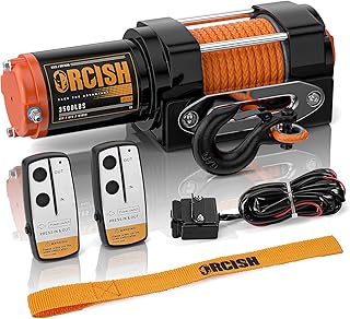 ORCISH Synthetisches Seilwinde-Set, 12 V, 3500 kg, zum Abschleppen von ATV/UTV, Off-Road-Anhängern, mit kabelloser Fernbedienung, Halterung (3500 synthetisches Seil)