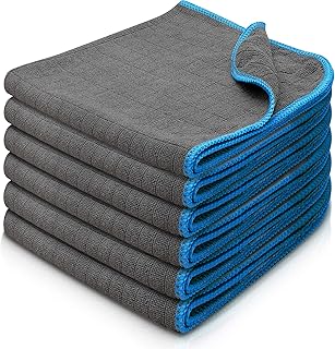 AstroAI Mikrofaser-Reinigungstücher 6 Pack,Zwei seitiger Mikrofasertücher extrem saugstark und schonend weich, Poliertücher für die Pflege von Auto/Motorrad, Gelb/Blau/Grau, 16 * 16 Zoll