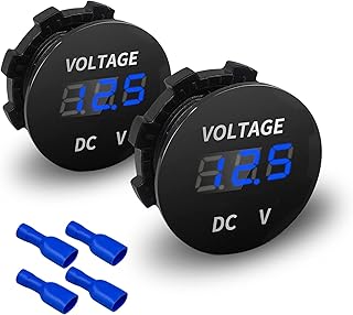 2 Stück DC 12V 24V Auto Voltmeter Spannungsmesser LED Display Panel Wasserdicht Digital Round Panel Spannungsprüfer Messgerät Meter mit Klemmen für Fahrzeug LKW Motorrad Boot Marine ATV UTVeter Blau