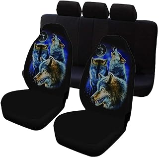 Autositzbezug Vordersitz und Rücksitze Universal,Auto Sitzbezüge Schonbezüge 2/7 Stücke Set Auto-Sitzbezug Rückenlehnenbezug Hinten Bankbezug Wolf/Leopard Print Auto-Zubehör Innenraum F 7 Stücke