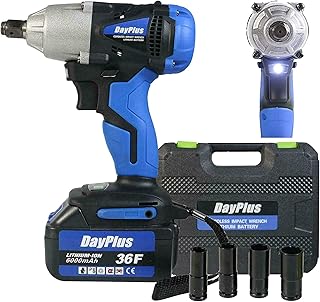 Akku Schlagschrauber 1/2 Zoll Set, 420Nm Drehschlagschrauber (18V 6.0Ah Akku) Vierkant-Schlagschrauber mit LED-Arbeitslicht, 4 Stecknüsse und Koffer