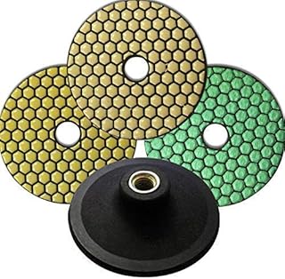 Set mit 3 Profi Diamant Schleifpads/Schleifscheiben Dia-Dry | Körnungen 100, 200, Polierer | 1 Aufnahmeteller | 100mm | Trockenschliff | Naturstein, Marmor, Granit, Feinsteinzeug, Keramik, Ton, Glas